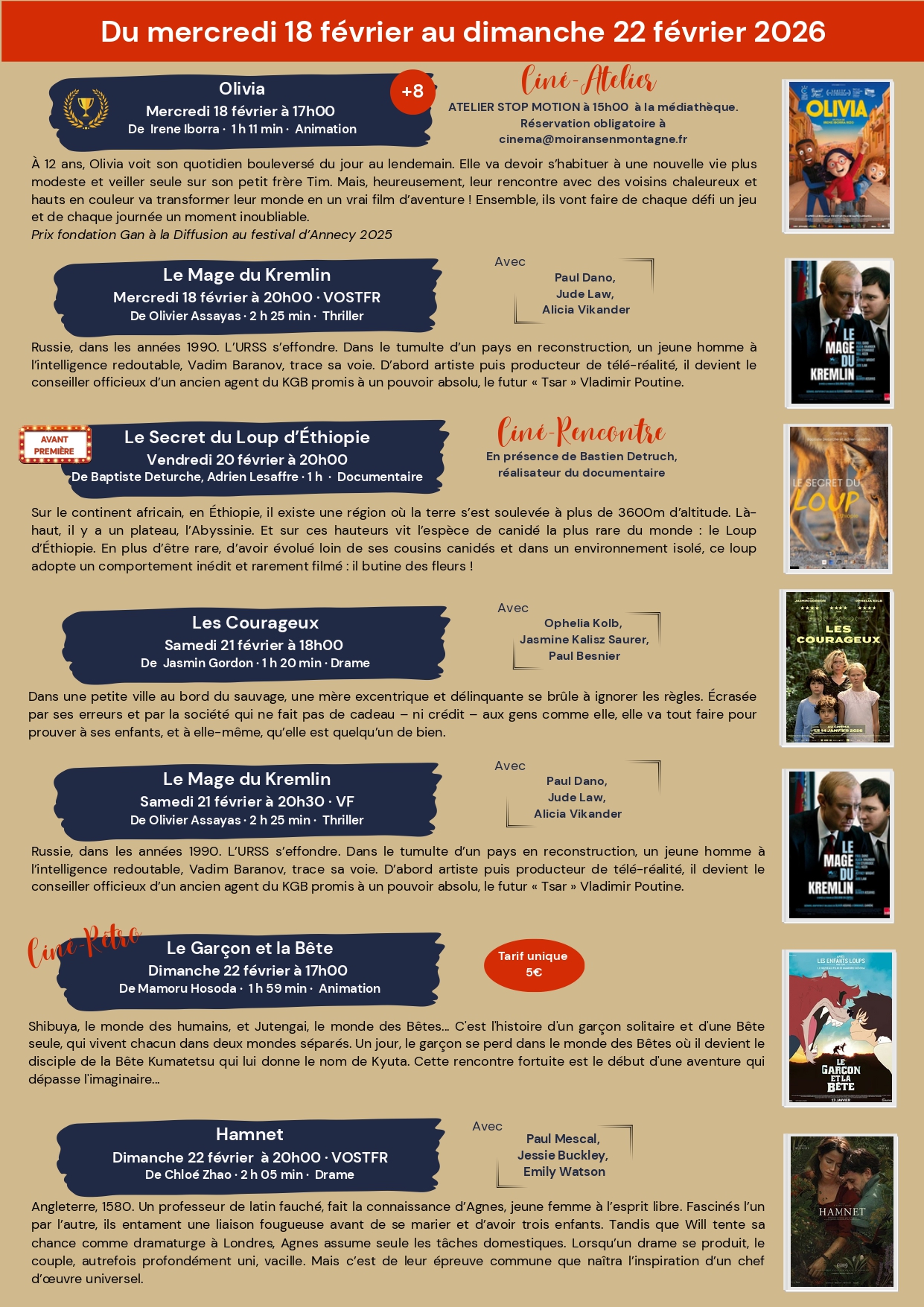 Programme Cinéma du 6 au 22 février 2026
